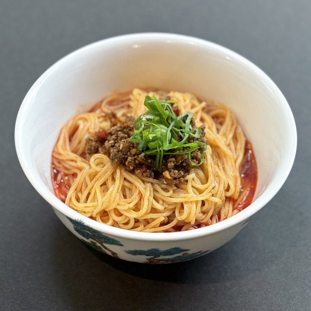 麻(マー)と辣(ラー)をきかせ、うま味もしっかり感じられる汁なし担々麺。ゆでたての麺に温めておいたオイルスープをかけ、よく混ぜれば出来上がり。花椒の香りがふわっと立ち上り、食欲を刺激します。オイルスープに混ぜ込んだ担々ミートがコクの秘密。シンプルながら満足度の高い汁なし担々麺です。